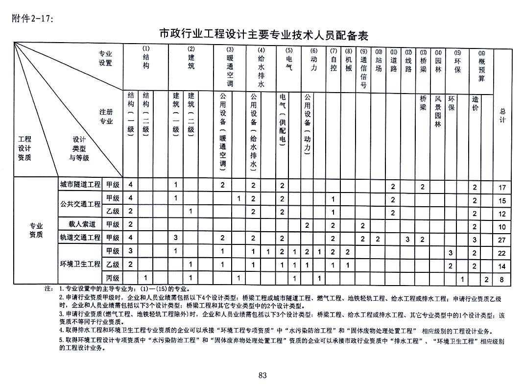 市政行业工程设计主要人员配备表2