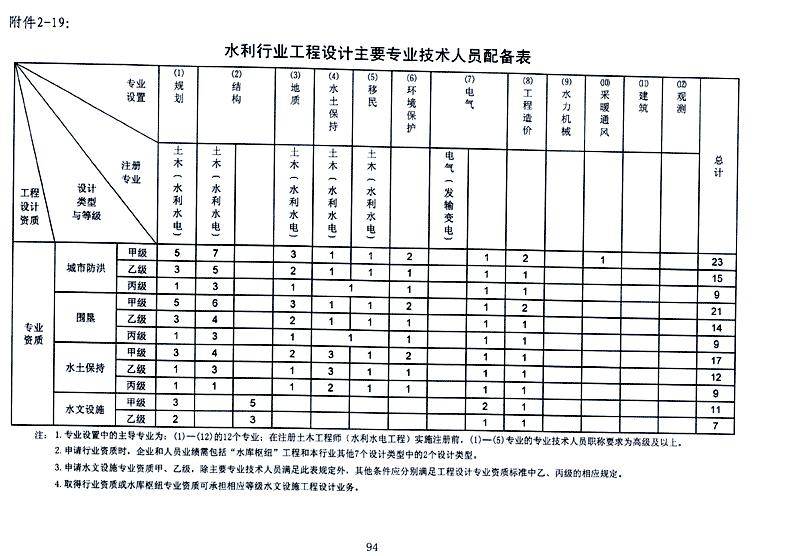 水利行业工程设计主要人员配备表1